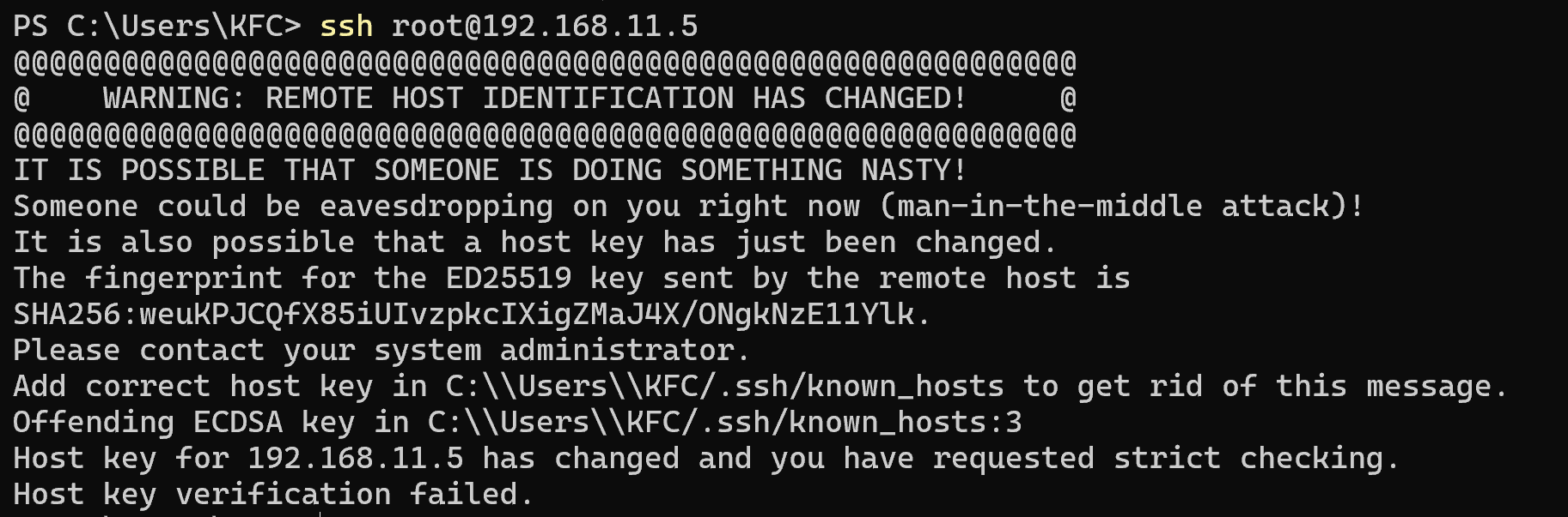 服务器身份改变,需要重新接受密钥或删除现有密钥